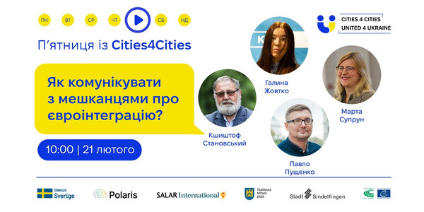 21 лютого - П’ятниця із Cities4Cities: Як комунікувати з мешканцями про євроінтеграцію?