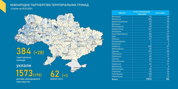 Міжнародне партнерство територіальних громад України: дані моніторингу Мінрозвитку