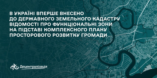 Вперше до Державного земельного кадастру внесли відомості про функціональні зони на підставі комплексного плану просторового розвитку громади