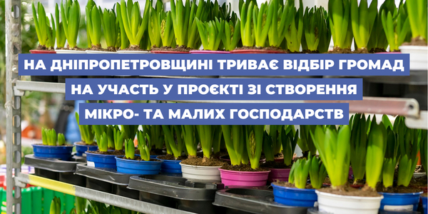 На Дніпропетровщині триває відбір громад на участь у проєкті зі створення мікро- та малих господарств