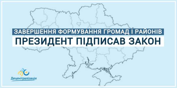 Президент підписав Закон, який дає змогу завершити створення спроможних громад та сформувати нові райони