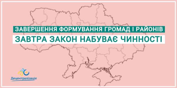 Закон уповноважив КМУ визначати адмінцентри і території громад на основі перспективних планів і підготувати законопроекти щодо районів