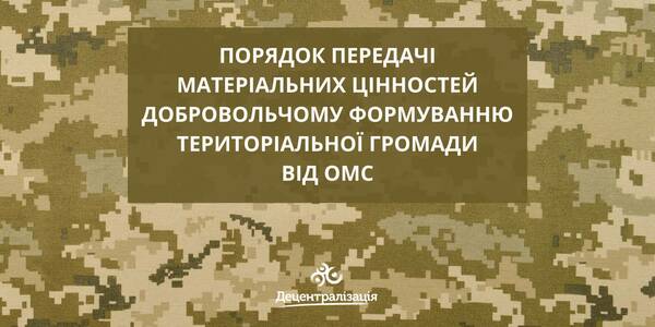 Порядок передачі матеріальних цінностей добровольчому формуванню територіальної громади від ОМС