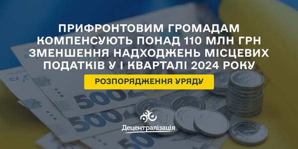 Уряд компенсує понад 110 млн грн прифронтовим громадам зменшення надходжень місцевих податків у І кварталі 2024 року