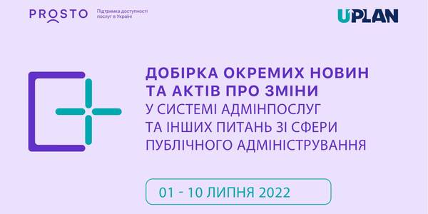 Добірка змін у сфері адмінпослуг та інших питань сфери публічного адміністрування за 1-10 липня 2022 року