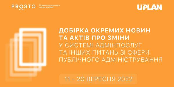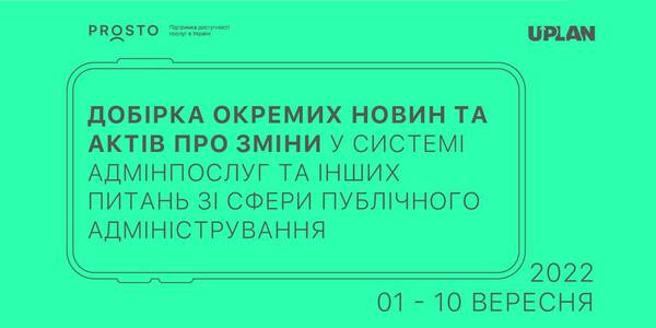 Добірка змін у сфері адмінпослуг та інших питань сфери публічного адміністрування за 1-10 вересня 2022 року