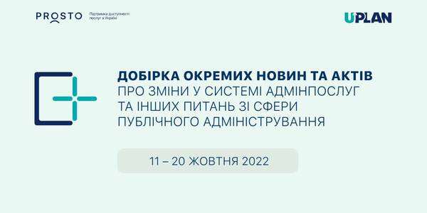 Добірка змін у сфері адмінпослуг та інших питань сфери публічного адміністрування за 11-20 жовтня 2022 року