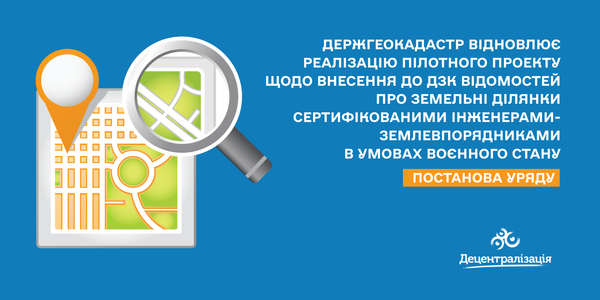 Держгеокадастр відновлює реалізацію пілотного проекту щодо внесення до ДЗК відомостей про земельні ділянки сертифікованими інженерами-землевпорядниками в умовах воєнного стану